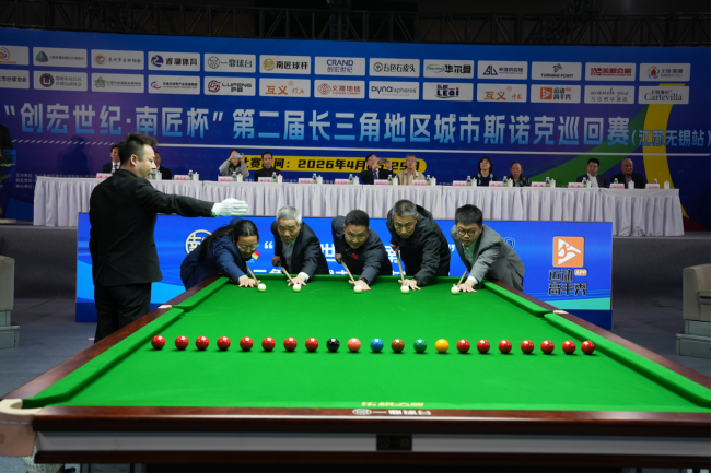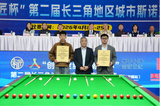 挥杆长三角,逐梦太湖畔。2026年4月25日,“创宏世纪·南匠杯”第二届长三角地区城市斯诺克巡回赛(江苏无锡站)在无锡市体育中心体育馆盛大开幕。来自江浙沪皖三省一市的128名斯诺克高手齐聚太湖之滨,在专业赛场展开为期5天的巅峰对决,共同角逐这一区域标杆性赛事的冠军荣耀。