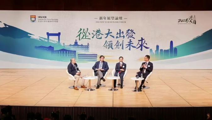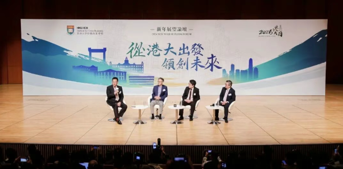 2026年1月18日,香港大学中国商业学院"从港大出发 领创未来"新年展望论坛在港大百周年校园李兆基会议中心盛大举行。14位专家学者及行业领袖围绕创新科技、财经金融、企业出海、跨境法治四大议题展开深度研讨,吸引300余名校友及亲友参与。