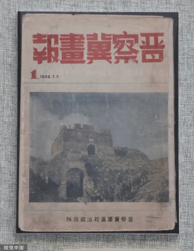 2024年12月31日,北京,《晋察冀画报》创刊号亮相“烽火记忆——《晋察冀画报》影像史料展”现场,封面照片为沙飞拍摄的《塞上风云》。郭海鹏/摄