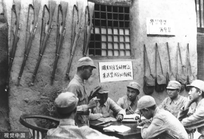 1942年,河北平山碾盘沟,晋察冀画报社的学习讨论会。沙飞/摄