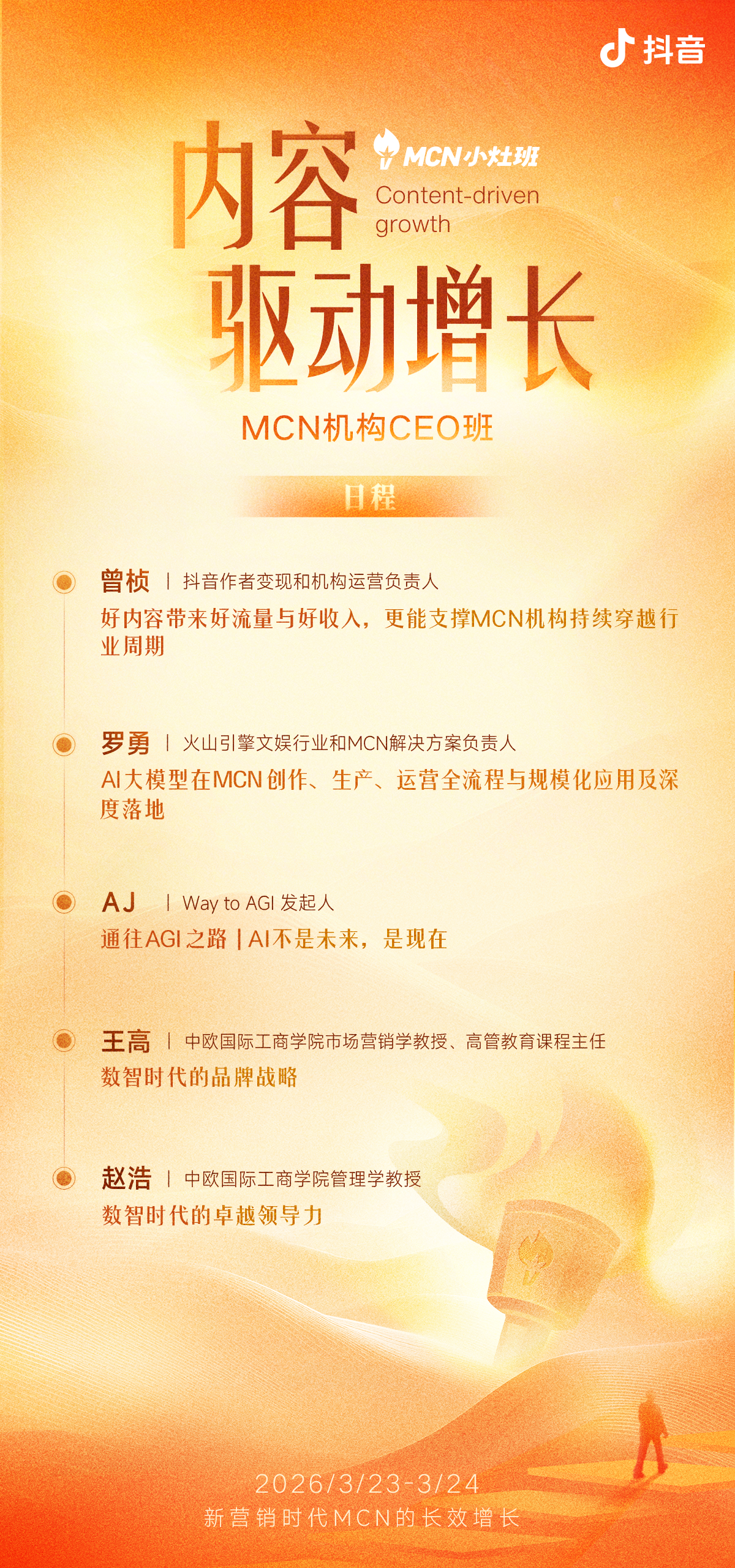 在此背景下,抖音MCN机构与中欧国际工商学院强强联手,重磅打造抖音MCN机构CEO班,以「内容驱动增长——新营销时代MCN的长效增长」为核心主题,汇聚行业顶尖力量,为MCN行业发展注入全新增长活力。
