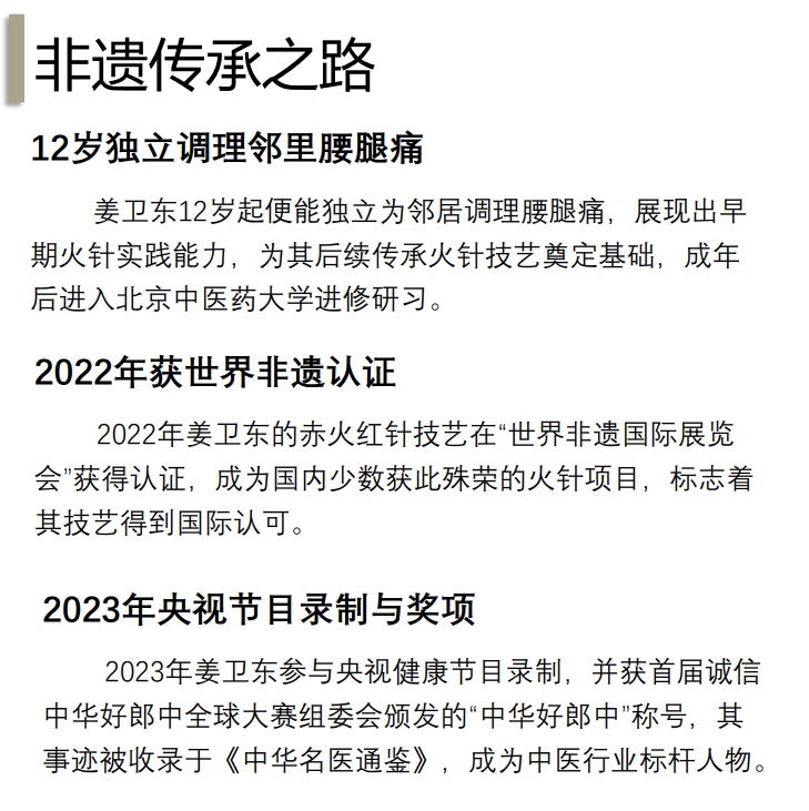 姜卫东的故事,是一段关于传承与创新的旅程,也是对中医事业无尽热爱的生动诠释。在未来的日子里,他将继续秉持初心,以赤火红针为媒介,书写更多关于健康与希望的篇章。