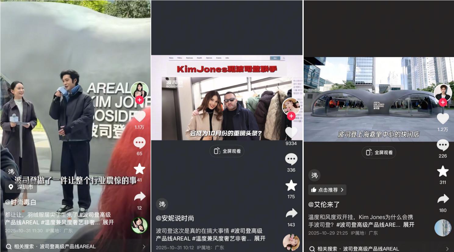 在抖音平台上,明星与时尚内容天然具备强互动、高共鸣属性。「HELLO 时尚季」为波司登定制的宣发路径清晰明确:先聚焦粉丝圈层与时尚界开展定向精耕,再逐步辐射更广泛人群。这一策略不仅让新品实现重磅亮相,更助力品牌快速沉淀下第一波扎实口碑。随后,探店、测评、穿搭展示、时尚点评等更多垂类博主加入共创行列,为新品向更广泛圈层的渗透注入强劲动力。